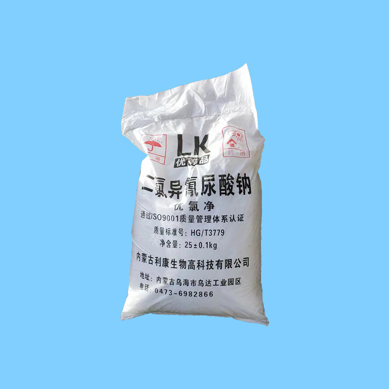 二氯异氰尿酸钠有较强的杀生作用,在20ppm时,杀菌率达到96%。可杀灭各种细菌、藻类、真菌和病菌。优氯净化学性质稳定,干燥条件下保存半年内有效氯下降不超过1%便于贮存运输;使用安全、简便、用量少、药效持续时间长。